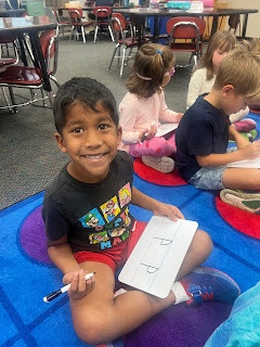 In literacy we have been learning many different concepts that "good readers" do and have had a lot of really good discussions about the read alouds that I have read to them. We have also been working hard on handwriting where we are learning the correct motion in writing upper and lowercase letters of specific letters. My kinders love the part of the lesson where we get to practice writing the newly learned letter on whiteboard with our "new" dry erase markers that have erasers attached at the end. I am so impressed with how well they are learning to write both types of the letters on the lines. Way to go, K-1!